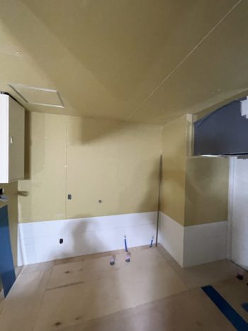 キッチン周り施工 ステンレス板壁の施工になります。
